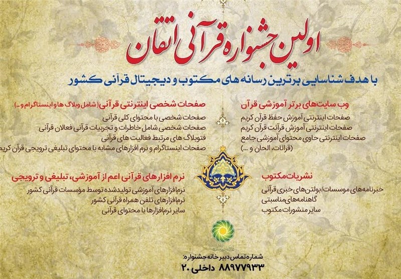 به گزارش خبرگزاری تسنیم، 21 فروردین ماه و همزمان با سالروز ولادت حضرت زهرا (س) نخستین جشنواره اتنخاب برترین رسانههای مکتوب و دیجیتال کشور «اتقان» آغاز خواهد شد.
