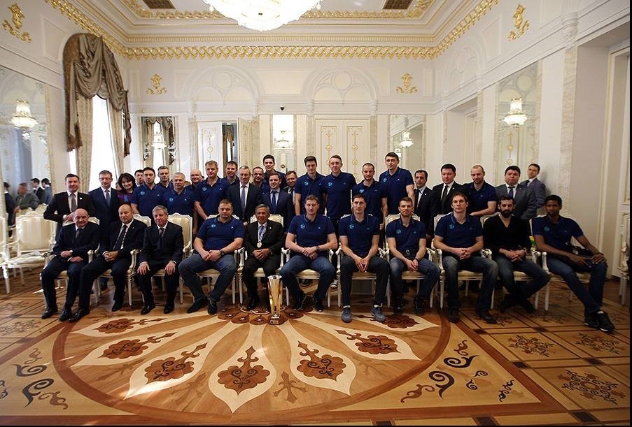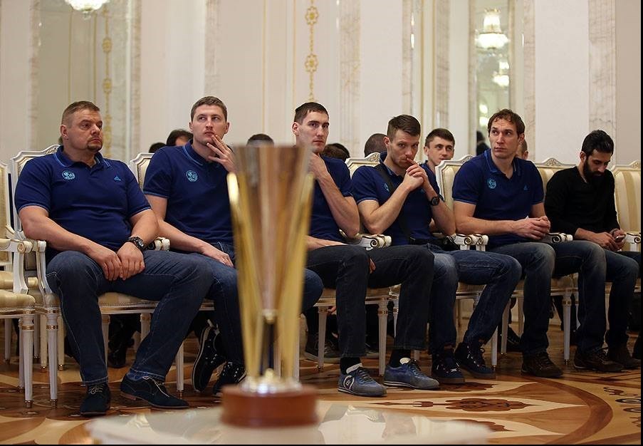 به گزارش خبرگزاری تسنیم، اعضای تیم زنیت کازان در ضیافت ویژهای که رستم مینیخانوف رئیس جمهور تاتارستان به مناسبت قهرمانی این تیم در لیگ قهرمانان اروپا ترتیب داده بود، شرکت کردند.