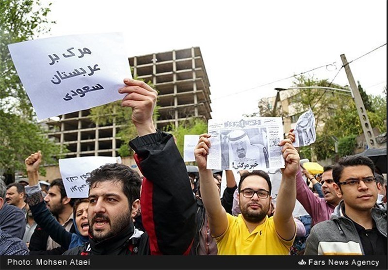 دانشجویان شرکت کننده در این اجتماع با سردادن شعارهای مرگ بر آل سعود، مرگ بر وهابی انزجار خود را نسبت به اقدام توهین آمیز ماموران عربستانی اعلام کردند.