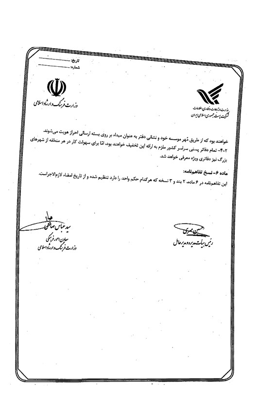 نیکنام حسینپور مشاور معاون فرهنگی و مدیر اجرایی این تفاهمنامه در این زمینه میگوید: تفاهمنامه مذکور هنوز اجرایی نشده است، قرار است ما نشستی با دوستان پست در وزارت ارشاد برگزار کنیم و درباره جزئیات این تفاهمنامه و شیوه اجرایی آن مذاکره کنیم.