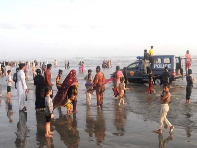 در ادامه تصاویری از جمعیت مردمی در ساحل دریای کراچی پاکستان مشاهده کنید: