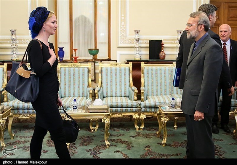 جالب اینجاست که برخلاف لباس این نماینده اروپایی در دیدار با رئیس مجلس این نحوه پوشش اسخاکه در دیدار با وزیر امور خارجه تغییر کرده و شکل دیگری به خود گرفته است. حال سوال اینجاست که چرا این اصول دیپلماتیک در مجلس به وی یادآوری نشده است. حمید رسایی در صفحه شخصی خود نظر رئیس مجلس در رابطه با این بی احترامی را اینگونه روایت می کند: «... به آقای لاریجانی هم ابتدا به مزاح گفتم ظاهرا نمایندگان پارلمان اروپا را بعد از خرید از بازار تهران به ملاقات شما آورده بودند و بعد گفتم این رفتار آنها برخلاف عرف و ضوابط دیدارهای دیپلماتیک و توهین آمیز است. ایشان هم اشکال را وارد می دانست و کوتاهی تیم تشریفات را قبول داشت البته معتقد بود که آنها مواضع خوبی در جلسات داشتند. اینکه چرا این نمایندگان اروپایی حداقل های آداب دیپلماتیک را رعایت نکردند و نمی توان آن را عمدی ندانست...»