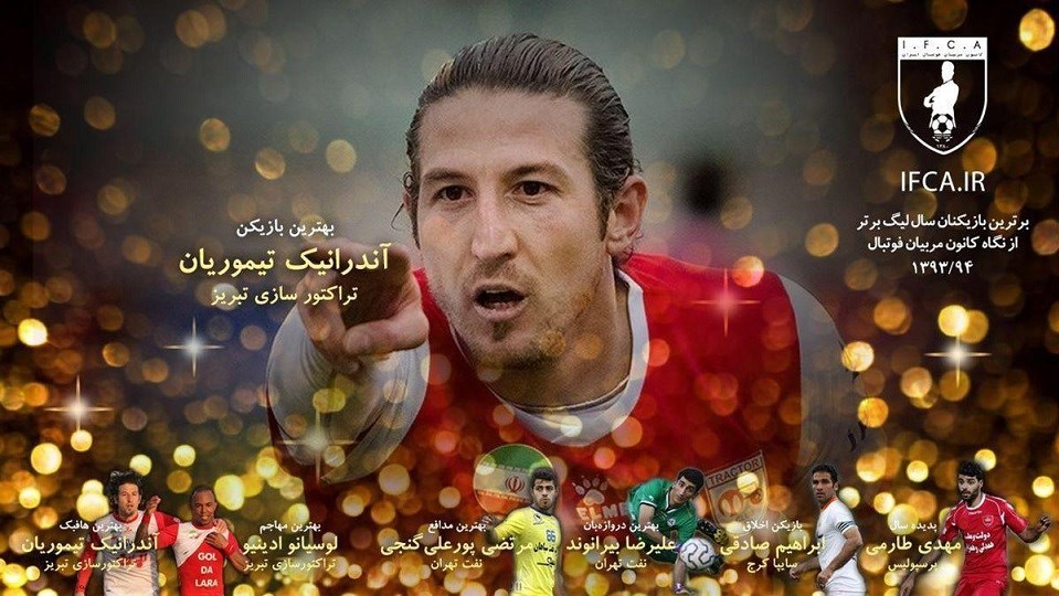به گزارش خبرگزاری تسنیم و به نقل از سایت رسمی کانون مربیان فوتبال ایران (Ifca.ir)، آندرانیک تیموریان، هافبک تیم ملی فوتبال کشورمان و باشگاه تراکتورسازی تبریز در رقابتی نزدیک با لوسیانو ادینیو، همتیمی برزیلی خود عنوان بهترین بازیکن سال فوتبال ایران را به دست آورد.