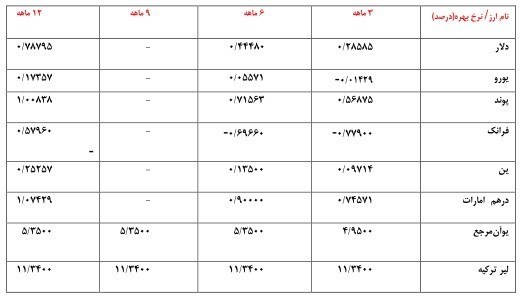 حاصل مطالعات بانک مرکزی در حوزه تحولات بازار ارزهای عمده در هفته منتهی به 14 ژوئن 2015-24 خردادماه 1394 نشان میدهد که متوسط ارزش دلار نسبت به متوسط ارزش آن در هفته ماقبل در برابر یورو، فرانک، ین و پوند به ترتیب 1.29، 0.73، 0.770 و 1.08 درصد تضعیف شد.