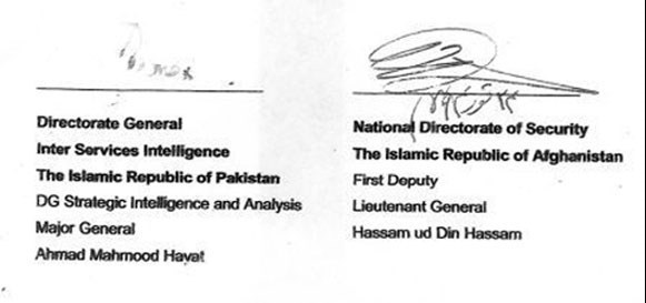 به گزارش دفتر منطقه‌ای خبرگزاری تسنیم، روزنامه پشتو‌ زبان «دیلی ویسا» در مطلبی مدعی شده است که نسخه‌ای از تفاهمنامه اطلاعاتی کابل - اسلام‌آباد را به دست آورده که براساس آن مشخص است که این سند توسط رهبران دو کشور به امضا رسیده است.