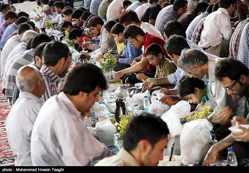 یکی روزه داران را خرما، نان، پنیر و سبزی میدهد تا روزه خود را باز کنند، یکی دیگر لیوانهای چای و دیگری ظرفهای سوپ را پر میکند و بسیاری دیگر از میهمانان این سفره ترجیح میدهند غذای خود را به خانه برده آن را کنار اعضای خانواده صرف کنند و این غذای متبرک را برای شفای بیماران و سلامتی بستگانشان با خود میبرند.