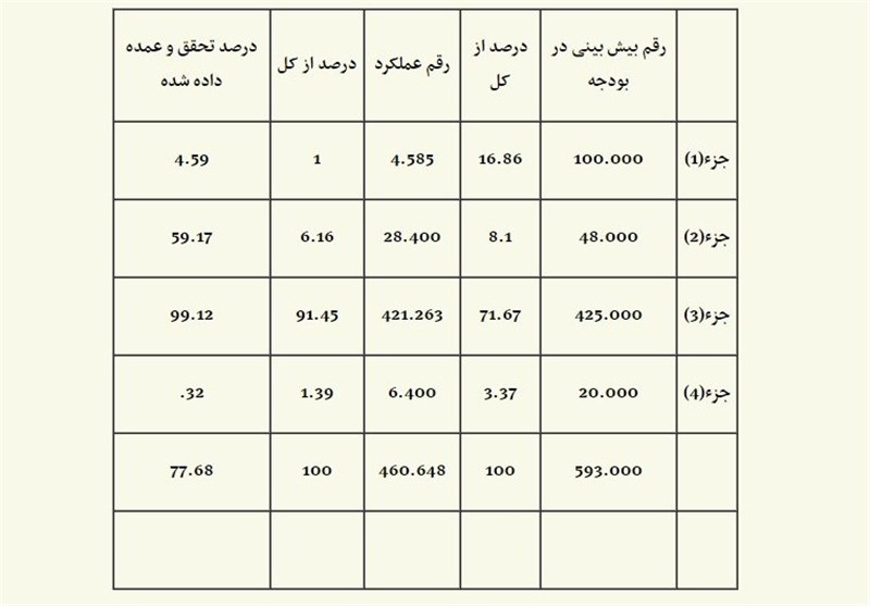 وی ضمن اشاره به انحراف دولت در تامین منابع مالی و هزینه کرد آن، افزود: بنابراین فقط 4.5 درصد وعده داده شده درخصوص کمک به تولید،حدود 60 درصد در بخش درمان، 32 درصد در بخش جوانان و 99 درصد پرداخت نقدی تحقق یافته است.