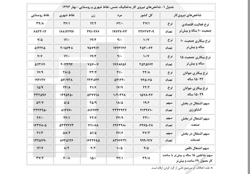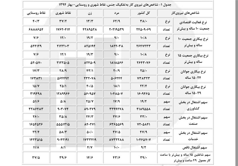 جداول مقایسه بیکاری در بهار 93 و 94 به شرح زیر است:
