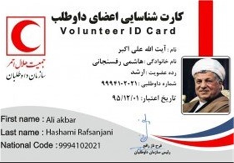 خبرگزاری تسنیم: رئیس مجمع تشخیص مصلحت نظام عضو داوطلب جمعیت هلال احمر شد.
