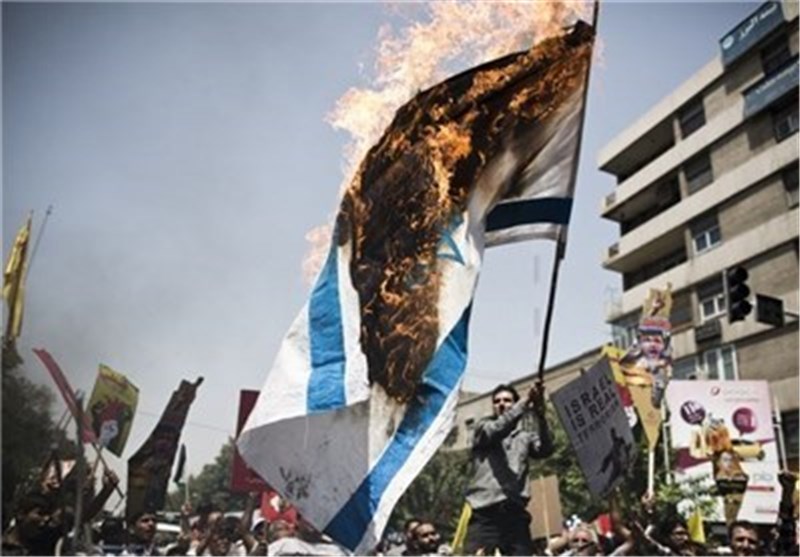 به گزارش خبرنگار سیاسی خبرگزاری تسنیم، همزمان با راهپیمایی روز جهانی قدس در تهران، راهپیمایان تهرانی پلاکاردهایی در دست دارند که روی آنها نوشته شده "چه توافق شود و چه نشود امنیت اسرائیل تامین نخواهد شد".