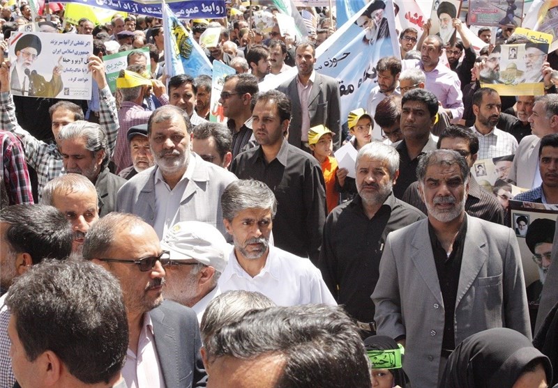 خبرگزاری تسنیم: مردم شهید پرور و همیشه در صحنه دیار کویری خراسان جنوبی امروز در راهپیمایی قدس بار دیگر به ندای رهبر انقلاب اسلامی لبیک گفتند و حماسه‌ای دیگری رقم زنند.