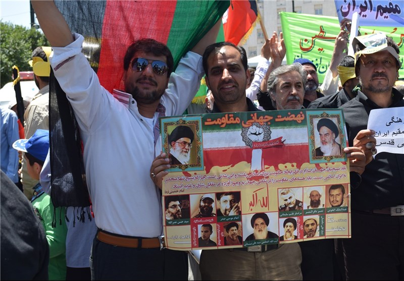 مهاجرین افغانستانی در کنار انصار ایرانی، فریاد آزادی قدس سردادند+تصاویر