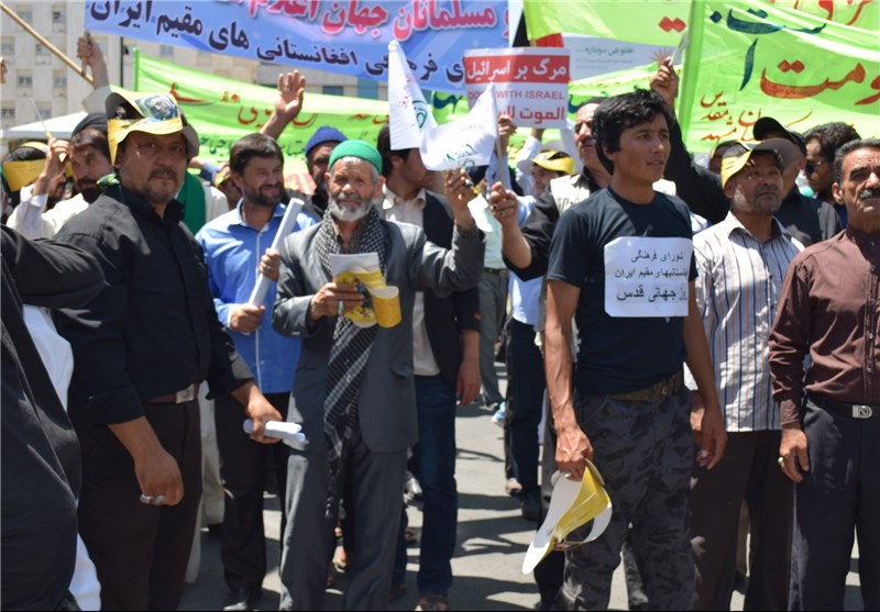هر سال در روز قدس مهاجرین زیادی بصورت پراکنده  همراه با دیگر برادران و خواهران ایرانی خود به دادخواهی از مردم مظلوم فلسطین می پرداختند اما امسال در میان سیل جمعیت راهپیمایان حضور دسته هایی از مراکز اجتماعی  فرهنگی مهاجرین افغانستانی بود که حضور مردم مهاجررا پررنگ تر نشان می داد حضوری که باهدف اتحاد مسلمین در سرتاسر جهان فریاد؛مرگ براستکبار را سر داده بودند.