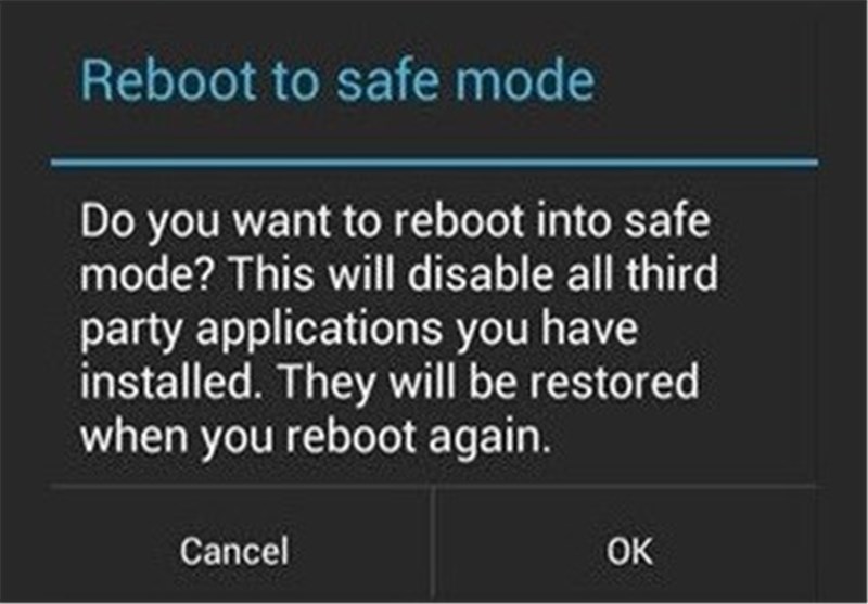 سپس گزینه OK را لمس کنید. با بوت شدن دستگاه در حالت امن، عملاً بدافزار نمی‌تواند اجرا شود، بنابراین به سادگی حذف نمودن هر برنامه دیگری، می‌توان برنامه آلوده را پاک کرد. پس از انجام این کار، مجدداً دستگاه را Restart نمایید تا به حال معمول بوت شود.