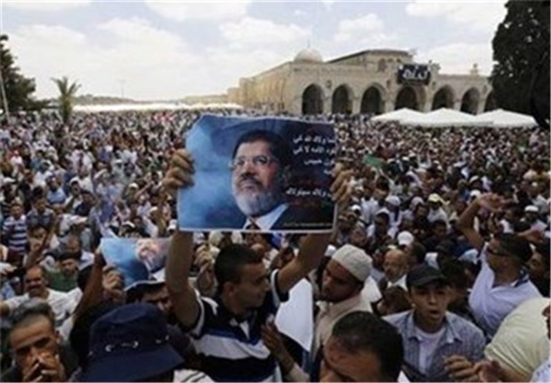 به گزارش گروه بین الملل خبرگزاری تسنیم به نقل از خبرگزاری آناتولی، نمازگزاران فلسطینی شب گذشته پس از پایان نماز تراویح با در دست داشتن آرم رابعةالعدویه، تصاویر مرسی و پلاکاردهایی که روی آنها نوشته شده بود «رئیس جمهور مشروع» تظاهرات کردند.