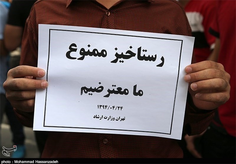 در این تجمع برخی از حاضرین شعارهایی مانند «لبیک یا حسین، لبیک یا رقیه» و «نمایش رستاخیز تعطیل باید گردد» را سر دادند. برخی شعارها نیز مستقیماً وزیر ارشاد و کارگردان فیلم رستاخیز را خطاب قرار میداد.