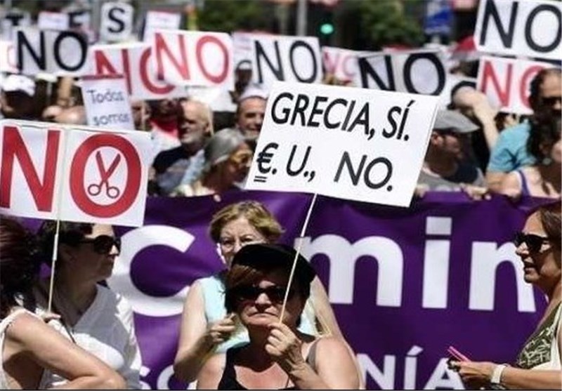 به گزارش گروه بین الملل خبرگزاری تسنیم به نقل از اسپاتنیک، مردم معترض یونان با سردادن شعارهایی در مخالفت با اتحادیه اروپا و صندوق بین المللی پول، اعتراض خود را نسبت به بسته ریاضت اقتصادی جدیدی که از سوی آلکسیس تسیپراس نخست وزیر این کشور پذیرفته شده، اعلام نمودند.