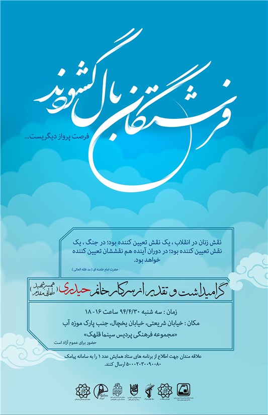 سومین برنامه شب خاطره «فرشتگان بال گشودند» روز سه‌شنبه 30 تیرماه با محوریت گرامیداشت «الهام حیدری» همسر شهید طهرانی‌مقدم مخصوص بانوان از ساعت 16 الی 18 در مجموعه فرهنگی پردیس سینما انقلاب واقع در خیابان شریعتی، خیابان یخچال، بعد از پارک‌موزه آب برگزار می‌شود.