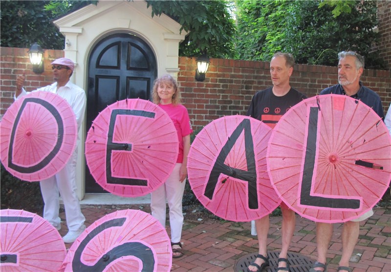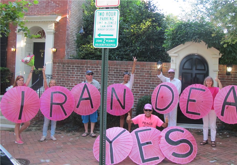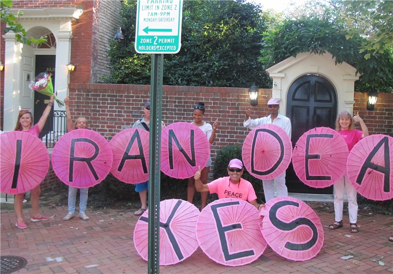 به گزارش خبرنگار خبرگزاری تسنیم در آمریکا، تعدادی از فعالان سیاسی در آمریکا با حضور در مقابل منزل وزیر خارجه این کشور از  توافق هسته‌ای میان ایران و 6 قدرت جهانی قدردانی کردند. دوشنبه عصر اعضای گروه کد پینک که یک گروه فعال سیاسی در آمریکا به شمار می‌رود با حضور در مقابل منزل جان کری، وزیر خارجه این کشور به دلیل دستیابی به توافق هسته‌ای با ایران از وی تشکر  کردند.