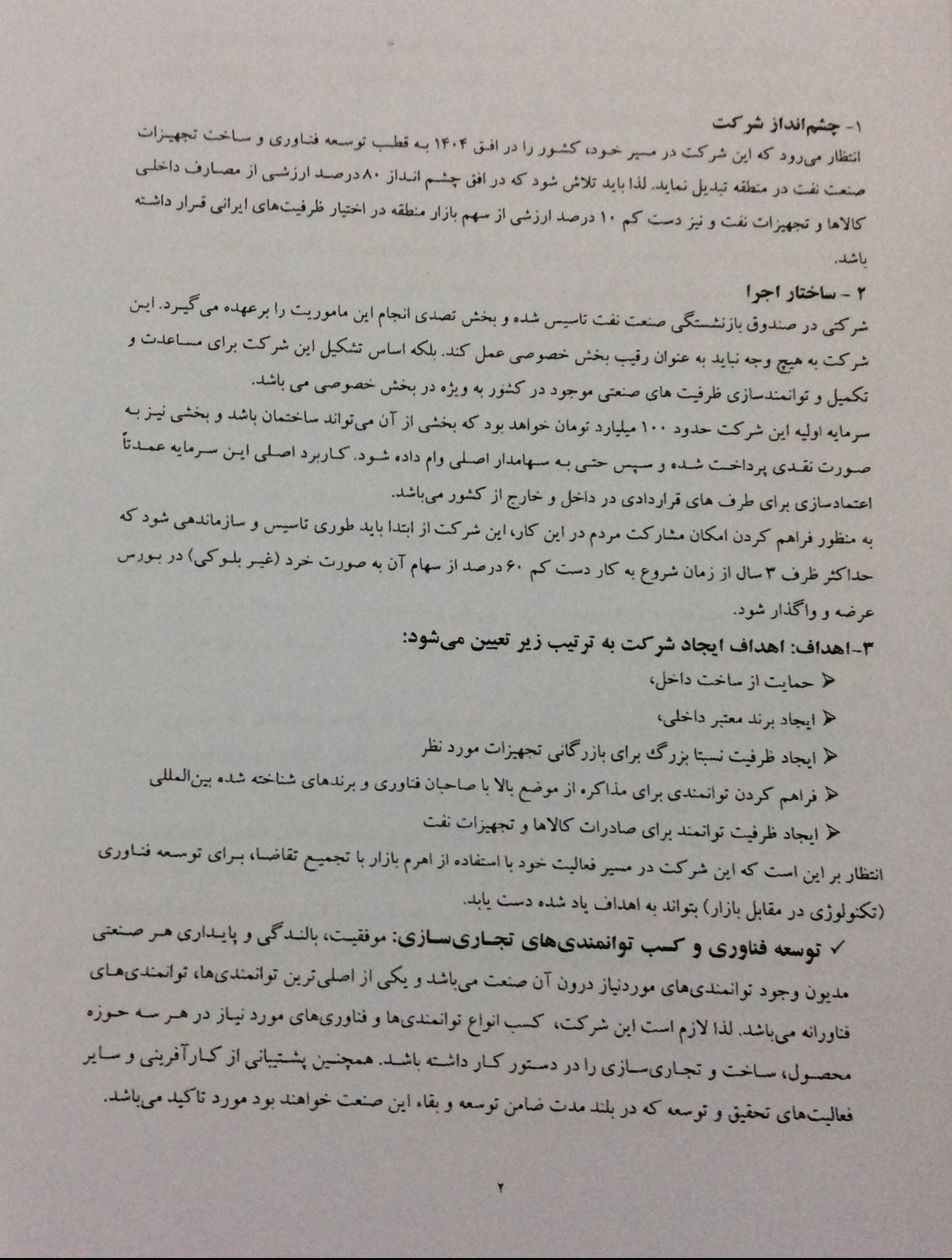 به گزارش خبرنگار اقتصادی خبرگزاری تسنیم، بر اساس ابلاغیه 5 خرداد 94 وزیر نفت، صندوق بازنشستگی صنعت نفت متعهد شده است که با سرمایه 100 میلیارد تومانی یک شرکت با هدف حمایت از ساخت داخل، ایجاد برند معتبر داخلی، ایجاد ظرفیت نسبتاً بزرگ برای بازرگانی تجهیزات مورد نظر، فراهم کردن توانمندی برای مذاکره از موضع بالا با صاحبان فناوری و برندهای شناخته شده بینالمللی و ایجاد ظرفیت توانمند برای صادرات کالاها و تجهیزات نفت تأسیس کند.
