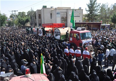 مردم شهرستان شهرضا 24 شهید غواص را را با عطر گلاب راهی شهرستان دولتآباد کردند.
