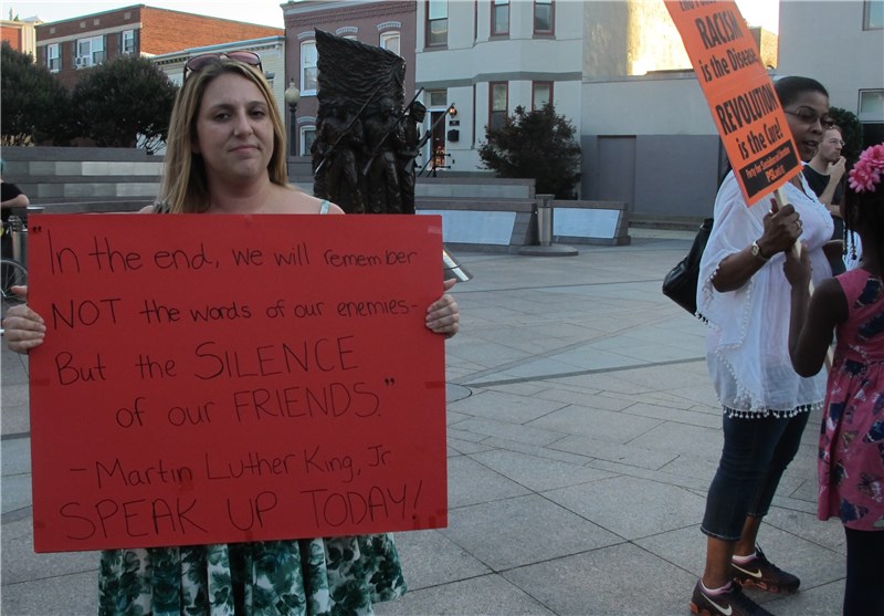 به گزارش خبرنگار بینالملل تسنیم در واشنگتن، دهها تن از فعالان اجتماعی آمریکایی روز گذشته و همزمان با اولین سالگرد کشتهشدن مایکل براون، جوان سیاه پوست و غیرمسلح آمریکایی به دست یک افسر پلیس سفیدپوست در محوطه موزه ملی سیاهپوستان در شهر واشنگتن تجمعی اعتراضی برگزار کردند.