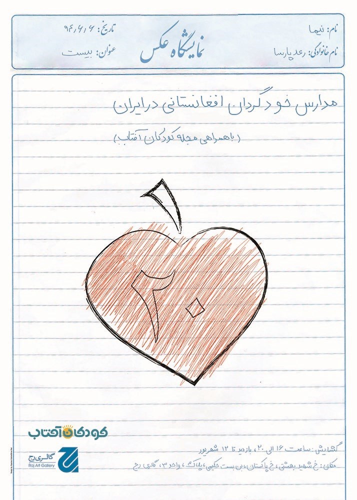 این نمایشگاه با همراهی مجله کودکان آفتاب در گالری رج برگزار میشود.