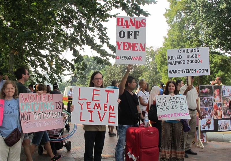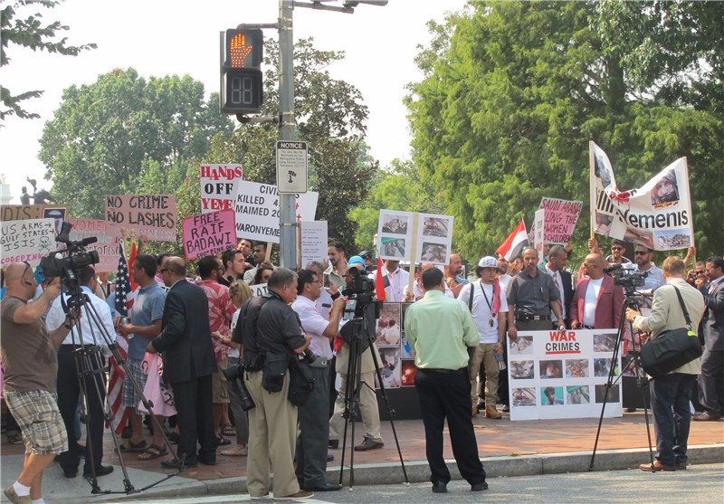به گزارش خبرنگار خبرگزاری تسنیم در واشنگتن، دهها نفر از فعالان اجتماعی و حقوق بشر، همچنین یمنیهای ساکن آمریکا و مخالفان سیاسی عربستانی همزمان با ورود ملک سلمان برای دیدار با رئیس جمهوری آمریکا، روبروی کاخ سفید تجمع کردند و فریاد اعتراض خود را به این سفر برآوردند.