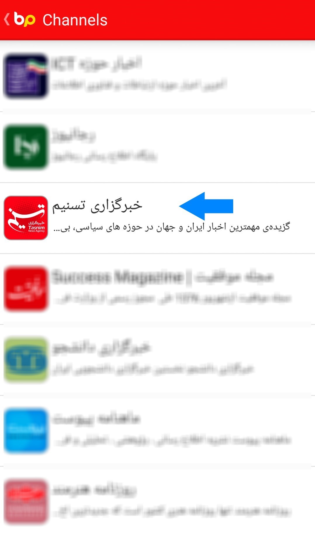 به گزارش گروه رسانههای خبرگزاری تسنیم، با استفاده از این کانال در برنامه بیسفون میتوانید آخرین اخبار و پیامکهای خبرگزاری تسنیم را در نرمافزار موبایلی بیسفون مشاهده کنید.