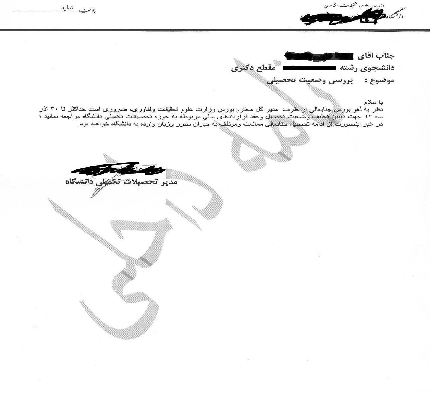 اخراج دانشجوی بورسیه پس از تصمیمات جدید وزارت علوم + سند