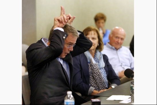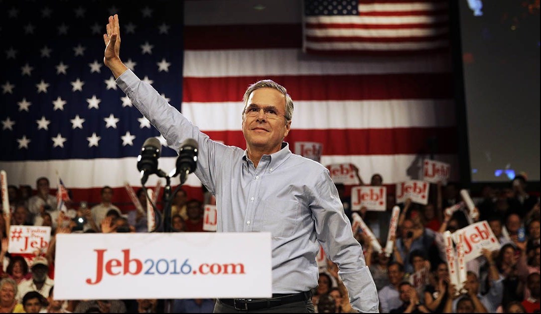 برای گریز از میراث جنگ افروزی پدر و برادر، کمپین جب بوش با حذف نام خانوادگی بوش صرفا از واژه «Jeb» استفاده کرده است.