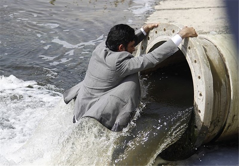 عضو شورای شهر بندرعباس در اعتراض به سرازیر شدن پسآب فاضلاب به دریای خلیج‌فارس، مقابل خروجی لوله فاضلاب قرار گرفت.