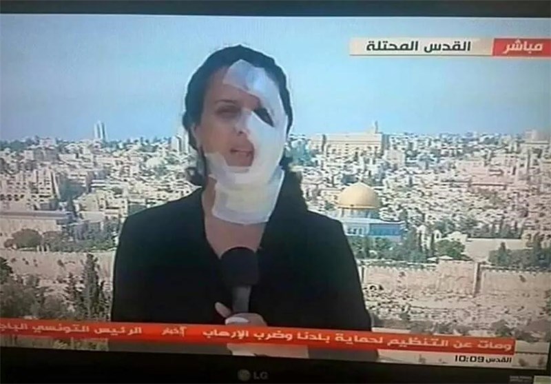 خبرنگار شبکه المیادین پس از زخمی شدن دست از کار نکشید و در گزارش زنده تلویزیونی حضور یافت و به ادامه گزارش خود از قدس اشغالی پرداخت.