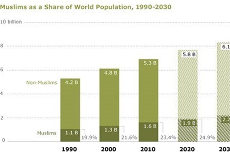 در سالهای اخیر گرایش به اسلام در اروپا و آمریکا روند تندتری به خود گرفتهاست. این روند آنقدر چشمگیر بودهاست که حتی «فرید زکریا» برای نشاندادن باورهای غلط عمومی نسبت به حقایق این علاقهمندی به اسلام و این موج گرایش گزارشی را منعکس کردهاست. در این گزارش که در سال 2006 منتشر شده، میزان رشد جمعیت مسلمانان در جهان سالانه 1.2 درصد عنوان شده است. پیشبینی میشود تا سال 2020 سرعت رشد جمعیت مسلمانان دو برابر سرعت رشد جمعیت دیگر ادیان باشد و تا سال 2030، مسلمانان بیش از یک چهارم جمعیت جهان را تشکیل دهند. امروز دین اسلام دومین دین بزرگ اروپاست.
