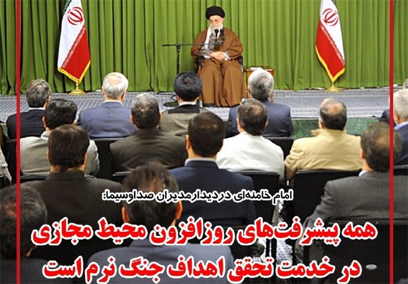 رهبر معظم انقلاب اسلامی با اشاره به امکانات سخت افزاری و نرم افزاری دشمن در جنگ نرم افزودند: همه پیشرفت‌های روزافزون محیط مجازی در خدمت تحقق اهداف جنگ نرم است.