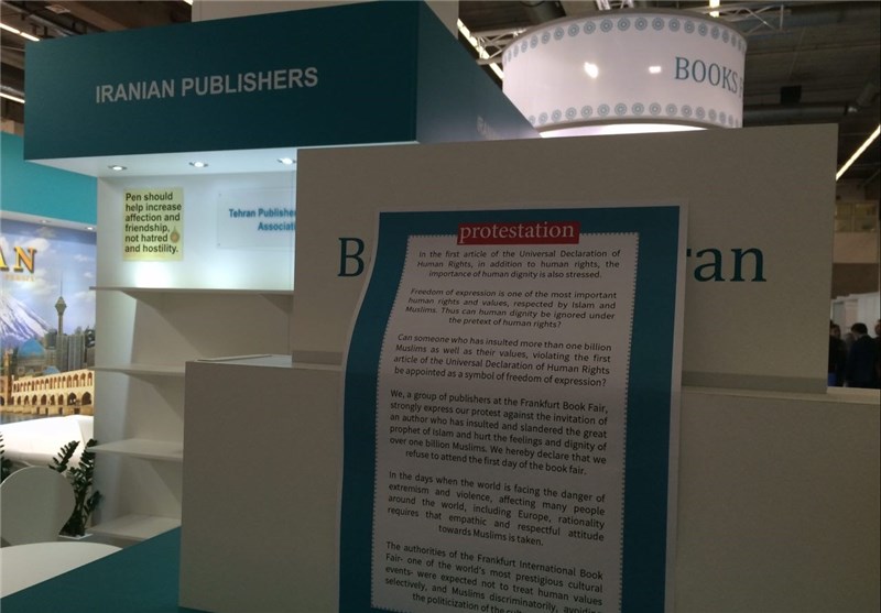 توزیع ترجمه انگلیسی رمان محمد(ص) و نامه مقام معظم رهبری به جوانان غربی از دیگر اقدامات ایران در نمایشگاه کتاب فرانکفورت بوده است، همچنین نصب پوسترهای اعتراضی ایران به زبانهای آلمانی و انگلیسی، نصب نوار مشکی مقابل غرفه و ... از دیگر اقداماتی است که توجه بازدیدکنندگان و ناشران کشورهای مختلف حاضر در نمایشگاه را به خود جلب کرده است.