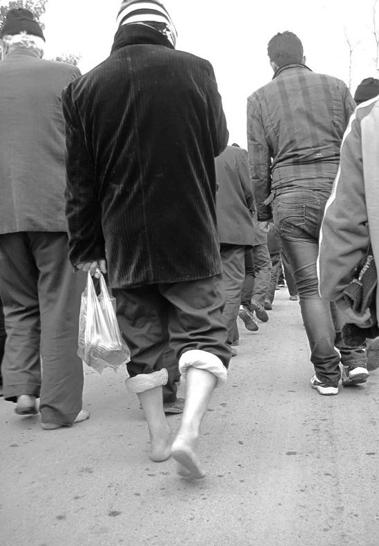 مردم عزادار و ریش سفیدان نیز که گاهی پابرهنه پشت عزاداران حرکت میکنند با نوای حزن انگیز حسینیم وای آرام آرام سینه زنان حرکت میکنند و پس از رسیدن به محل مورد نظر صف منظمی را ترتیب داده و مشغول عزاداری میشوند.