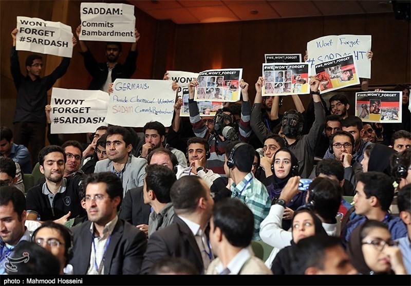 در حاشیه این مراسم جمعی از دانشجویان دانشگاه تهران در حین سخنرانی وزیر امور خارجه آلمان قبل از ارائه پنل تخصصی، با در دست داشتن پلاکاردهایی بهزبان انگلیسی و فارسی با مضمون "ما سردشت را فراموش نمیکنیم"، "هدیه آلمان به ایران 2هزار شهید و جانباز شیمیایی در سردشت"،" توسعه و صلح پایدار با سلاح شیمیایی نمیشود" نسبت به حمایت دولت وقت آلمان از حمله نظامی رژیم بعث عراق به ایران اعتراض کردند.