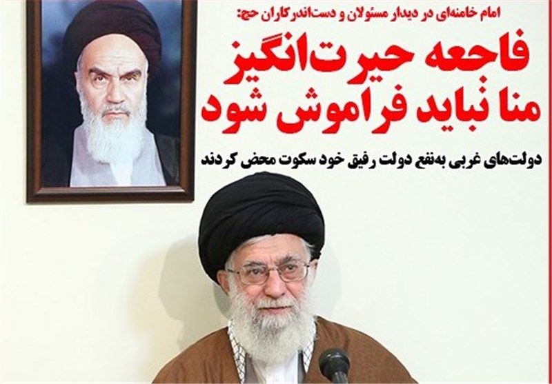 رهبر معظم انقلاب در دیدار مسئولان و دست‌اندرکاران حج فرمودند: حادثه منا به‌هیچ‌وجه نباید فراموش شود و دستگاه دیپلماسی و سازمان حج موظف هستند که این موضوع را به‌صورت قاطع دنبال کنند.