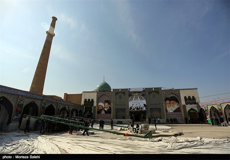 فقط تنها تغییرش این است که بعد از آنکه چادر را روی تیرک انداختند و اصطلاحا دوختند از طریق برق برافراشته میشود. با حضور مردم. شاید حالا بیشتر 150 نفر. بعد مردم گوشههای چادر را میکشند بالا روی پشت بام تا خیمه کامل شود.