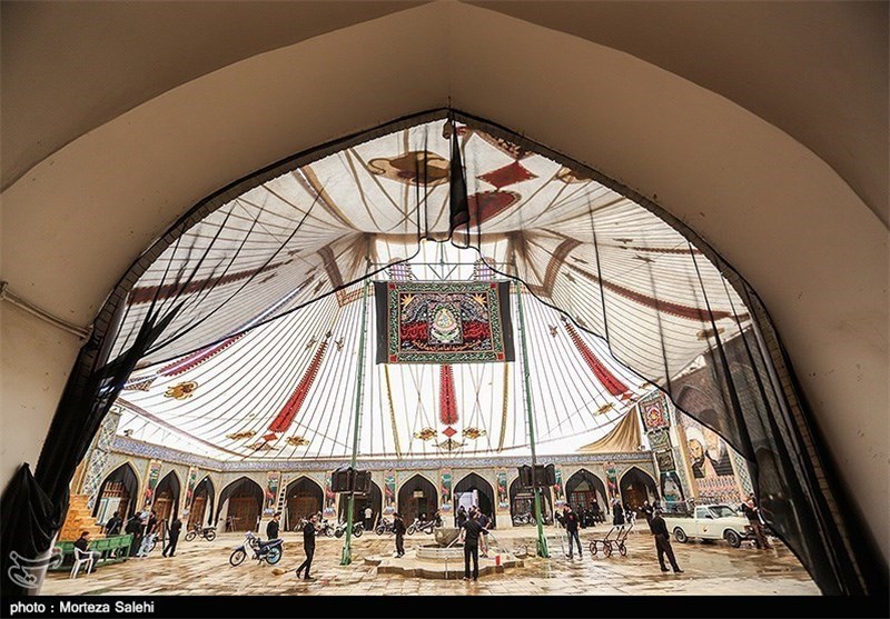 حالا خیمه ها، در همه تکایا داربستی است. اما اینجا همچنان همان روش تیرکی است. یک خیمه کامل و شبیه به آن چه که ابا عبدالله الحسین در کربلا برافراشت. سبکش اینجا دیده میشود. این چادر، یکی از عظمتهای ویژه حسینیه است که علی رغم برف و باران و مشکلات مختلفی که وجود داشته است، سالهای سال حفظ شده و خیمه ای که زده می شود یک خیمه کامل است.