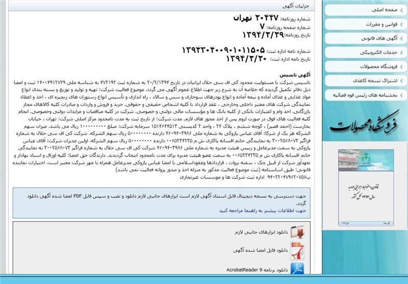 در عکس زیر مشخص می شود که اسناد ثبت این شرکت در روزنامه رسمی موجود است.