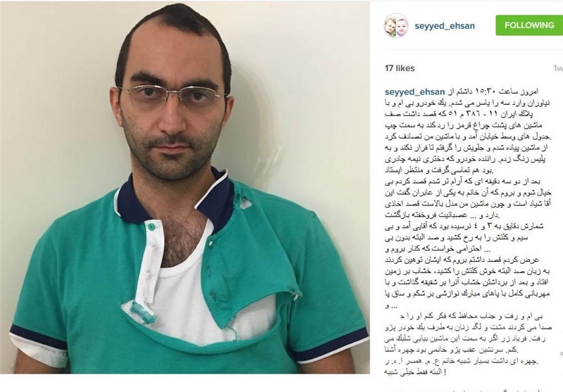 بعد از حادثه از خودم عکسی گرفته و در صفحه اینستاگرامم گذاشته بودم تا ثبت خاطره ای باشد و اشتراک گذاری با دوستان و اقوام. صفحه اینستاگرامم دنبال کنندگان محدودی داشت که غالباً از اقوام و دوستان نزدیک هستند. حتی نام خانوادگی ام را هم در عنوان صفحه درج نکرده ام. با توجه به شناخت مخاطبان محدود صفحه ام گمان نمی کردم که قضیه بعد رسانه ای پیدا کند، آن هم دو هفته پس از درج مطلب !