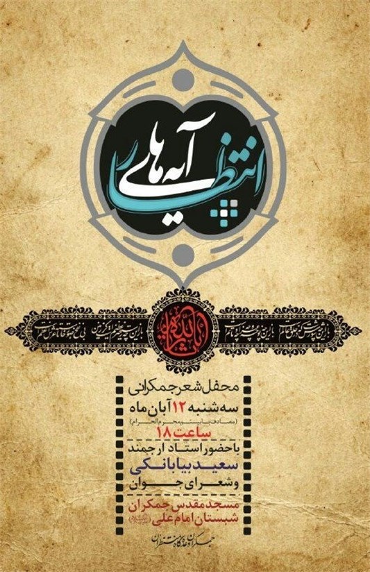 به گزارش خبرنگار فرهنگی خبرگزاری تسنیم، همزمان با ایام عزاداری سرور و سید شهیدان، امام حسین(ع) و یارانشان، شب شعر «آیههای انتظار» با حضور سعید بیابانکی و جمعی از شاعران جوان کشور در مسجد مقدس جمکران برگزار میشود.