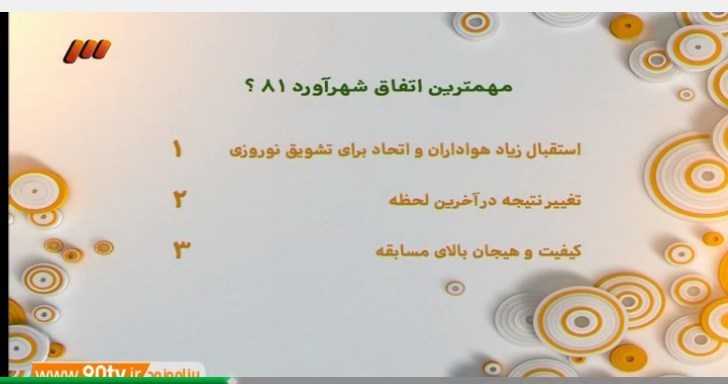 * 90 درجه شهرآورد 81 دومین آیتمی بود که پخش شد که فیلم آن را در زیر مشاهده می‌کنید: