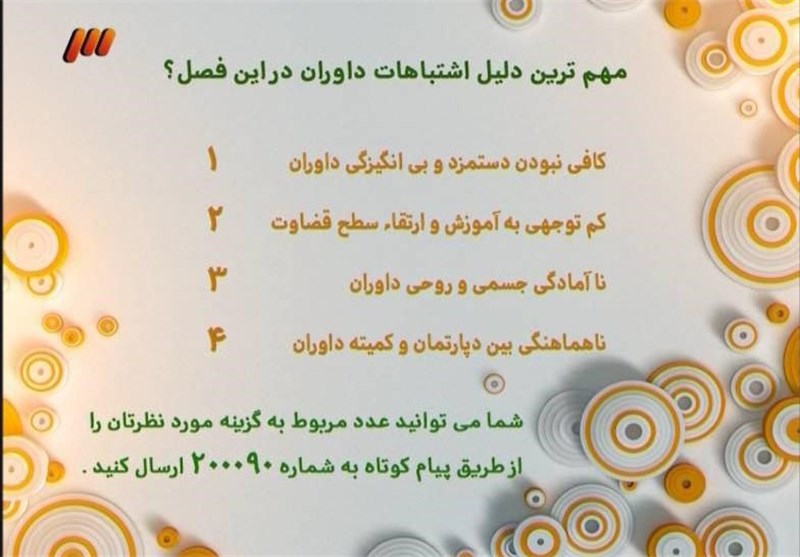* سوال نظرسنجی برنامه این هفته «مهمترین دلیل اشتباهات داوری این فصل بود» که سه گزینه برای این سوال مدنظر قرار داده شده بود.
