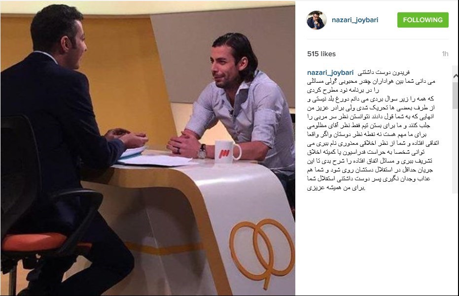 به گزارش خبرگزاری تسنیم، پس از اینکه فریدون زندی در برنامه نود اعلام کرد که «شاید حضورم در استقلال برای بعضیها پول نداشت»، علی نظریجویباری معاون ورزشی باشگاه استقلال در صفحه اینستاگرام خود نوشت: