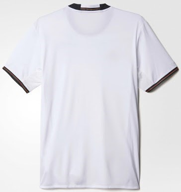 طراحی پیراهن اول ژرمنها کاملاً کلاسیک و تماماً سفید رنگ با نوارهایی به رنگ مشکی در سر آستین و دور یقه است و نشان قهرمانی جام جهانی 2014 نیز در جلوی این پیراهن دیده میشود. شورت ورزشی و جورابهای پیراهن اول تیم ملی آلمان به رنگ مشکی است.