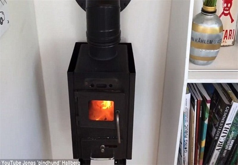 با وجود اینکه جنس دیوار های این اتاق از چوب می باشد اما سازنده آن یک بخاری را بر روی دیوار نصب کرده است.
