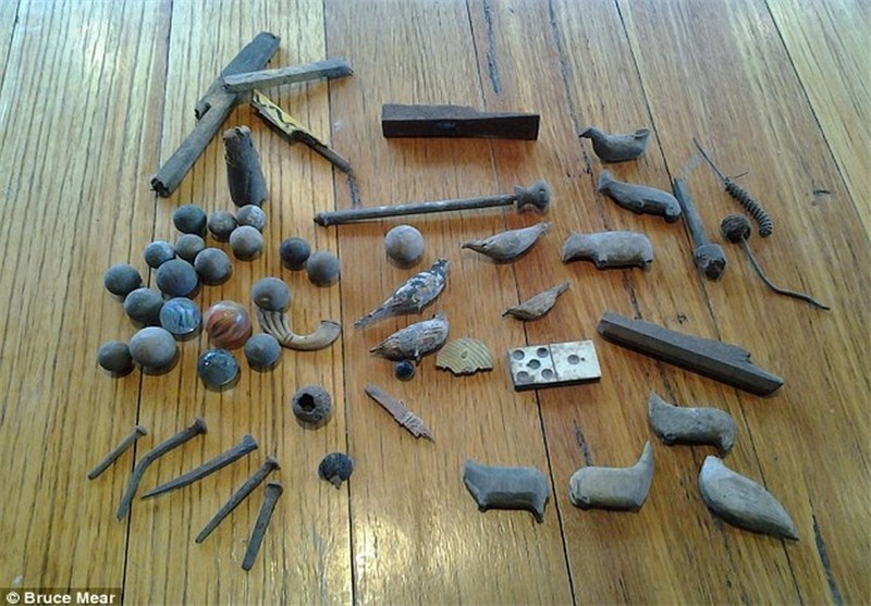 این اسباب بازی های شامل پرنده چوبی، تیله و قطعاتی از دومینو می شود که نشان می دهد کودکان قرن هجدهم با چه وسایلی بازی می کردند.